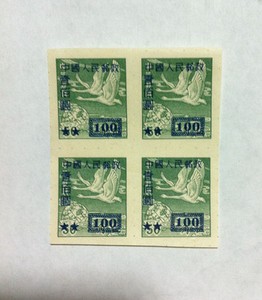 CN71 CHINA STAMP SCARCE FLYING GEESE STAMP OVERPRINTED IMPERFORATE UNUSED 4BLOCK