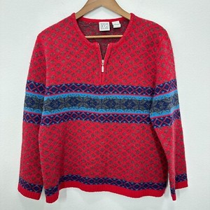 Vintage Field Gear Bright Red 100% Lambswool Fair Isle Quarter Zip Cabincore