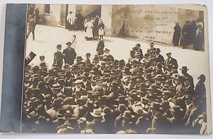 1911 BORGO D'ALE (Vercelli) animated photograph POPULATION WAITING FOR THE PARISH PRIEST