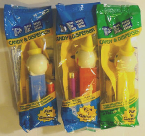 Pez 1999 Jack in the Box Limited Edition Complete Set of 3 blue-red-yellow stems