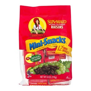 SUN MAID CALIFONIA RAISINS SNACK - 6oz - 12CT BAG. - PACK OF 3BAGS