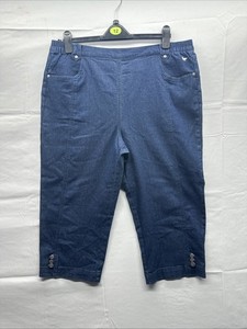 Country Rose Women Blue Denim Cropped Jeans Size 18 Elastic Waist Pocket W36 L22