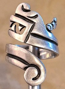 Vintage TAXCO MEXICO Sterling Silver Figural Bypass Wrap Hand Carved DRAGON Ring