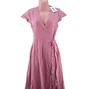 Ro&Zo Geo Print Wrap Midi Dress, Tie Belt, Size UK 8, Pink CZ109