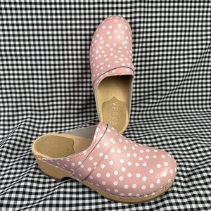 Verka Ledig Pink Polka Dot Swedish Cottagecore Wooden Clog Size EU 37 / US 6.5