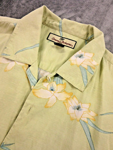Tommy Bahama Sz Medium Silk Hawaiian Shirt Short Sleeve Buttons Green