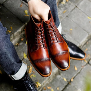 Handmade Men Brown Hand Burnish Oxfords Boot, Brown Lace up Ankle Boots for mens