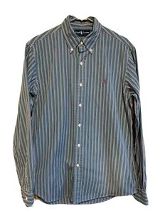Polo Ralph Lauren Custom Fit Button Up Dress Shirt Green Stripe Size MEDIUM