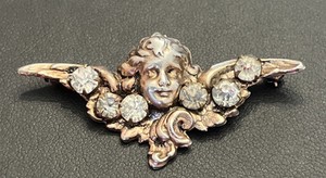 Antique Art Nouveau Sterling Silver Rose Gold Gilt Flying Cherub Pin Brooch 2”