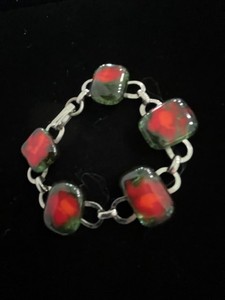 Vintage Silver Tone Red & Green Link Bracelet