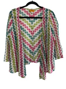 Ruby Rd. Petite Multicolor Chevron Open-Front Crochet Cardigan PL