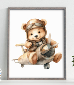 Nursery Wall Art Print, Aviator Bear Kids Room Print, Baby Wall Decor Print #96