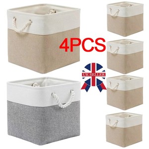 4PCS Fabric Foldable Storage Box Shelf Baskets with Handle for Wardrobes Closets US $8.54 to US $22.36