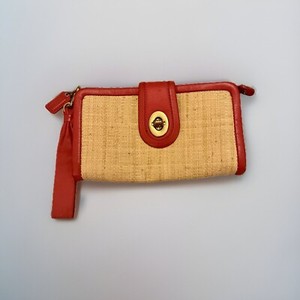 Coach Style #LO868-4274 Parker Wristlet Wallet in Natural Straw & Pink Leather