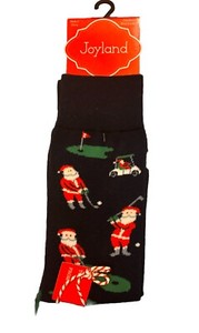 Joyland Men’s Size 8-12 Santa Golfing Printed Navy Blue Trouser Socks New