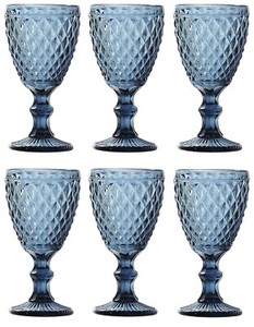 WINE GLASSES vintage red white 350ml SIDARI BLUE GIFT BOX of 6