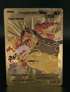 Pokémon Charizard Pikachu VMAX Tag Team Gold Foil Fan Art Collector Card TCG