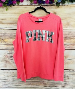 Victoria’s Secret PINK Plaid Front Logo Crew Neck Long Sleeve Fleece Sweatshirt