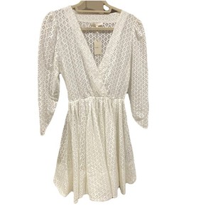 MAJE 3 Ralina Mini Skater Large Dress EU42 US 12 Lace Flared V-Neck Pure White