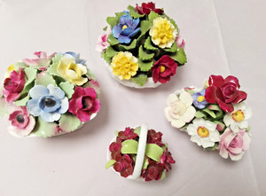 Collection of 4 Aynsley Fine Bone China Flowers In White Basket ~ VGC