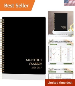 2026-2027 Monthly Calendar Planner - Black, 24 with Goal Sections