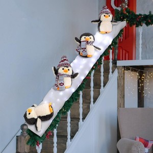 Penguins Christmas Stair Decorations Banister Christmas Decorations with 4pcs...