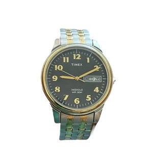 Timex Easy Reader Indiglo two tone Black Dial Day Date Watch 35MM untested