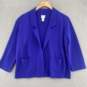 Chicos Sweater Womens 0 US Small Blue Structured Sara Cardigan 3/4 Sleeve Knit