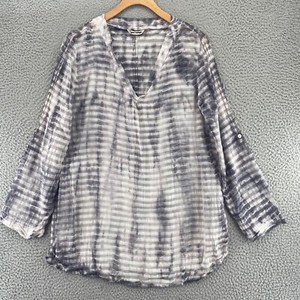 Soft Surroundings Top Womens Medium Serenity Gray Tie Dye Stripe Roll Tab Sleeve