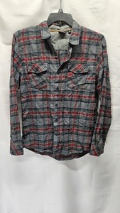 Mens Burnside Size Large Gray And Red Plaid Button Up Shirt