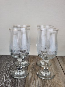 Gold Rimmed Winter Wonderland Arby's Retro Holiday Wine Goblets - Set of 4