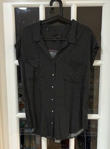 JACHS GIRLFRIEND Shirt Top Women's XL Black/White Cap Sleeve Button Up