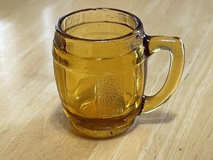 VINTAGE GLASS SMALL AMBER BARREL SHAPE BARRELL TOOTHPICK HOLDER OR SHOT GLASS