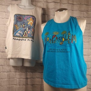 VTG Lot Of 2 90s TankTop Punta Cana Tourist Acapulco Vacation M/L Old Navy Cusma