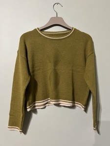 100% Fine Wool Pullover Sweater Olive/beige Bust 102cm Length 58cm Fits M Soft