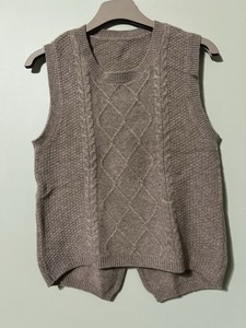 100% Wool Cable Knit Vest Brown | Sleeveless Round Neck | Bust 88cm Fits M Stain