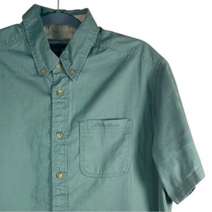 Eddie Bauer 100% Cotton Short Sleeve Button Down Olive Green Camp Shirt Sz L