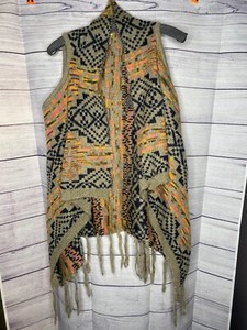 Women's Lildy aztec print sweater vest cardigan with tassels size small/medium