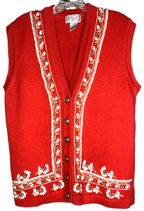 Vintage P Galli Christmas Sweater Vest Women Large Winter Button Y2K Red 90s