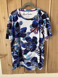 Robert Graham Blue/White Floral Short Sleeve Top Size M NWOT