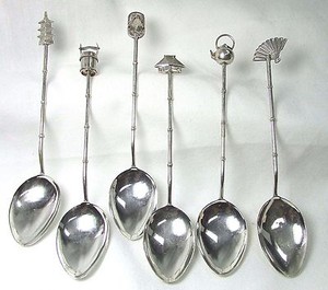 6 Vintage Asian / Oriental Figural Bamboo Demitasse Spoon Sterling Silver 950
