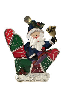 International Silver Company Santa & Sleigh Stained Glass Votive Candle Holder