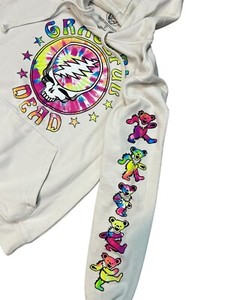 Grateful Dead Tie-Dye Graphic Nude Cream Pullover Rock Hoodie Dancin Bears Small