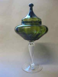 Vintage Murano Glass Footed Bonbon Dish with Lid ~ Olive Green ~ 35.5 cm Tall