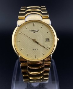 Vintage Longines QWR Swiss Date Gold Tone Round Ladies Analog Conquest Watch