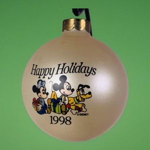 Vtg Disney 1998 Mickey, Minnie & Pluto Happy Holiday Christmas Glass Ornament