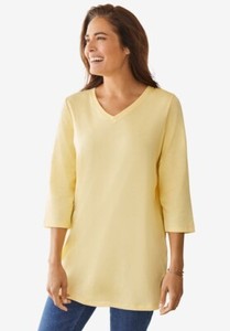 Woman Within Perfect Three-Quarter Sleeve V-Neck Tunic Gray 1X Side Hem Slits