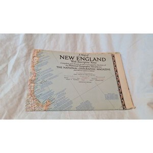 Vintage National Geo Magazine Map of New England With Descriptive Notes 1955