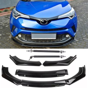Glossy Black Front Bumper Lip Spoiler + Strut Rods Bar For Toyota C-HR 2016-2023