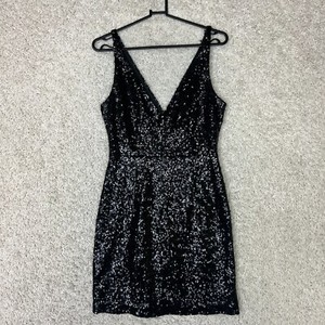 Lulus Black Sequin Bodycon Dress Womens Medium V Neck Sleeveless Sexy Mini LBD